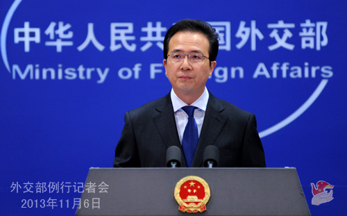 2013年11月6日,外交部發(fā)言人洪磊主持例行記者會(huì)。