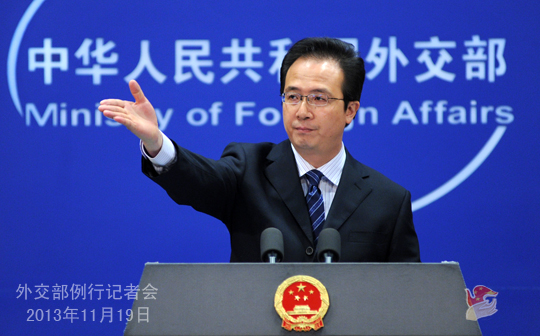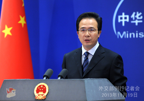 2013年11月19日,外交部發(fā)言人洪磊主持例行記者會。