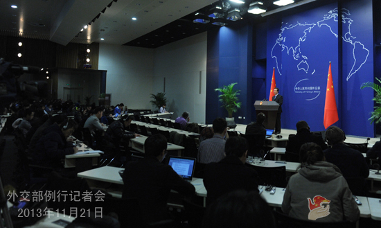 2013年11月21日,外交部發(fā)言人洪磊主持例行記者會(huì)。