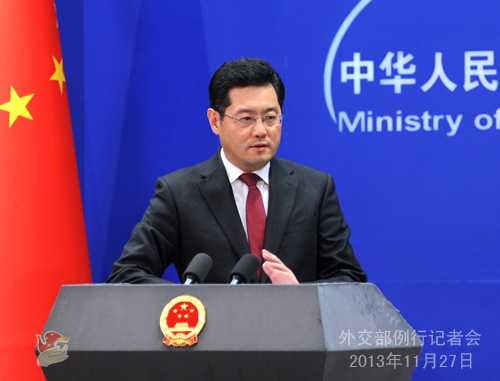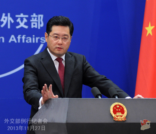 2013年11月27日,外交部發(fā)言人秦剛主持例行記者會(huì)。