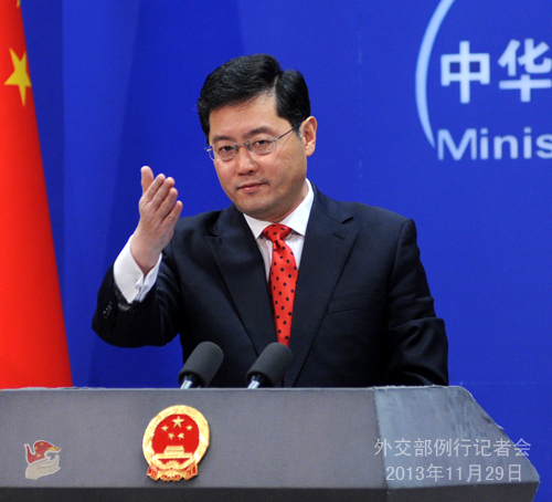 2013年11月29日,外交部發(fā)言人秦剛主持例行記者會(huì)。