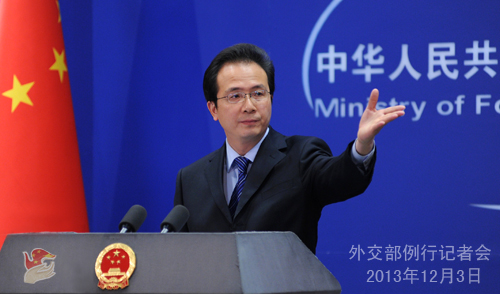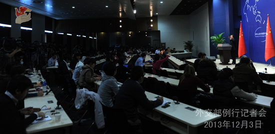 2013年12月3日,外交部發(fā)言人洪磊主持例行記者會。