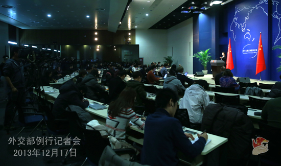 2013年12月17日,外交部發(fā)言人華春瑩主持例行記者會。