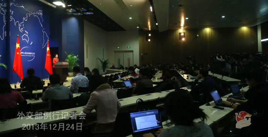 2013年12月24日,外交部發(fā)言人華春瑩主持例行記者會(huì)。