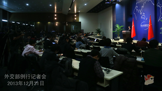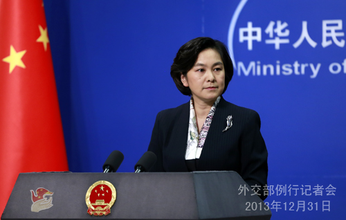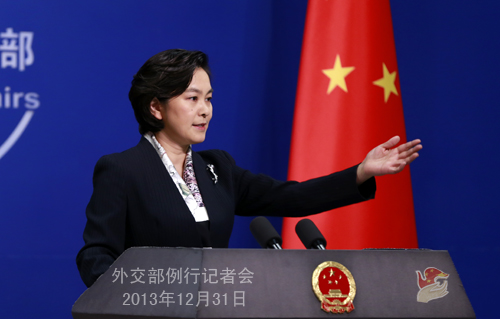 2013年12月31日,外交部發(fā)言人華春瑩主持例行記者會。