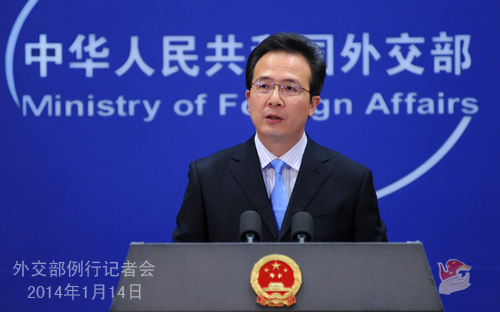 2014年1月14日,外交部發(fā)言人洪磊主持例行記者會(huì)。