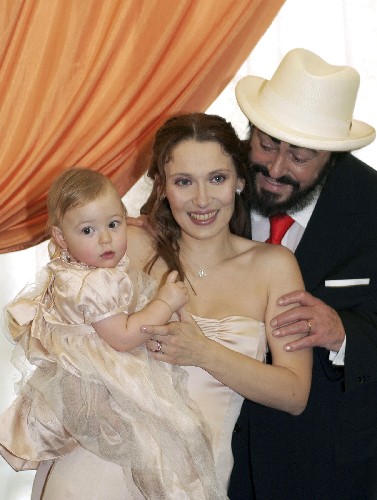 帕瓦羅蒂與妻子曼托瓦尼和他們11個(gè)月大的女兒