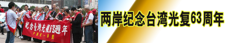 相關(guān)新聞:臺(tái)各界紀(jì)念臺(tái)灣光復(fù)63周年要求當(dāng)局廢除扭曲歷史的教科書 臺(tái)“中華統(tǒng)一促進(jìn)黨”集會(huì)紀(jì)念臺(tái)灣光復(fù)63周年 |