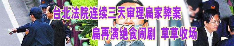 臺北地方法院24日開庭審查陳水扁涉及的公務機要費等弊案,經過漫長審訊,最后在陳水扁獨白近二小時后,庭訊于晚間7時許結束。在庭訊中,陳水扁可謂是使出了看家的本領,不但堅持不認罪,還炮火四射大爆“內幕”,企圖拉眾人下水,“拖延戰(zhàn)術”、“烏賊戰(zhàn)術”被陳水扁運用得爐火純青......《全文》 |