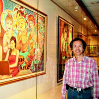 臺鄉(xiāng)土畫家魏慶發(fā)畫貫古今 畫中佛像都在看電腦 |
