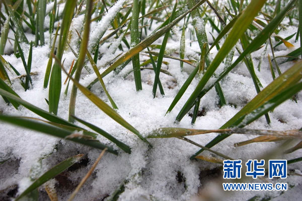 2月9日,在河南許昌鄉(xiāng)村的麥田里,久旱的麥苗覆蓋了一層雪花。當(dāng)日,受冷空氣影響,河南迎來新春的第一場(chǎng)雪。降雪為久旱的中原大地提供了急需的水分給養(yǎng)。新華社發(fā)(牛書培 攝)