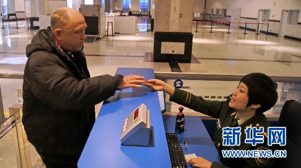 2月2日,邊檢人員為出入境旅客服務。當日是農歷大年三十,位于我國北疆的內蒙古滿洲里口岸依然保持24小時通關。據(jù)悉,2010年滿洲里口岸過貨量超過2600萬噸,邊防檢查站先后查驗出入境人數(shù)超過140萬人次。新華社記者 李欣 攝