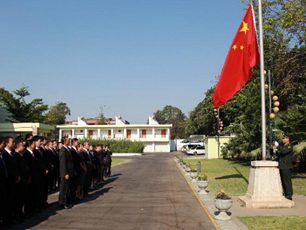 中國駐贊比亞使館舉行迎國慶升國旗活動