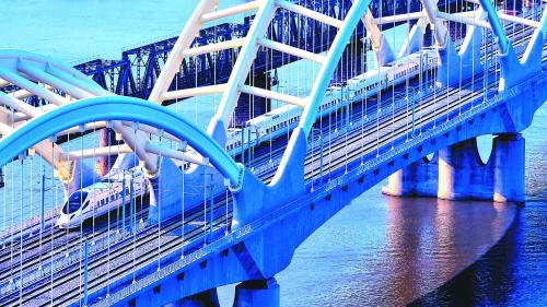 中國最北的高寒高鐵——哈齊高鐵駛過松花江特大橋。黑龍江日報記者陳寶林?jǐn)z