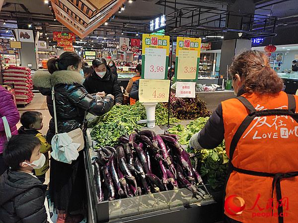 湖北省武漢市四新南路百尚超市中,市民在選購(gòu)新鮮蔬菜。人民網(wǎng) 郭婷婷攝