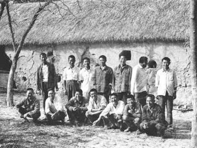一九八一年,部分“大包干”帶頭人在茅草屋農(nóng)舍前合影(資料照片)。