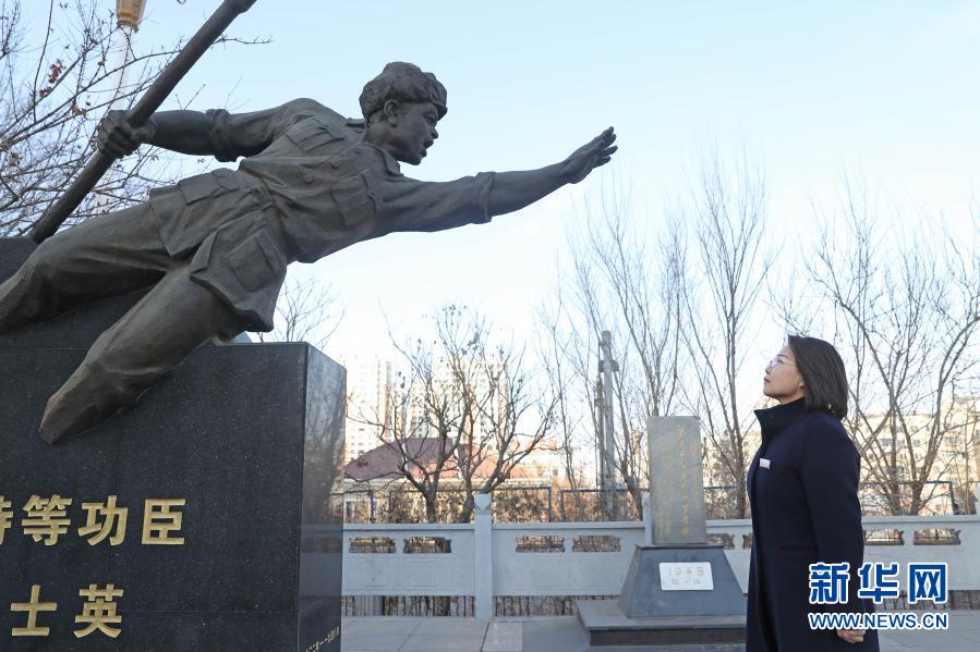 “遼沈戰(zhàn)役時,部隊打到錦州城西北角,一座地堡始終沒有拿下。爺爺主動沖到地堡下,把爆破筒塞進了敵人的地堡里。他剛要轉(zhuǎn)身,敵人就把這個爆破筒從地堡里給推了出來,這個時候爺爺就用自己的身體把地堡槍眼給堵住,與敵人同歸于盡了!迸渌貞(zhàn)斗遺址保護中心講解員梁丹丹每次講起這段往事都難過不已。