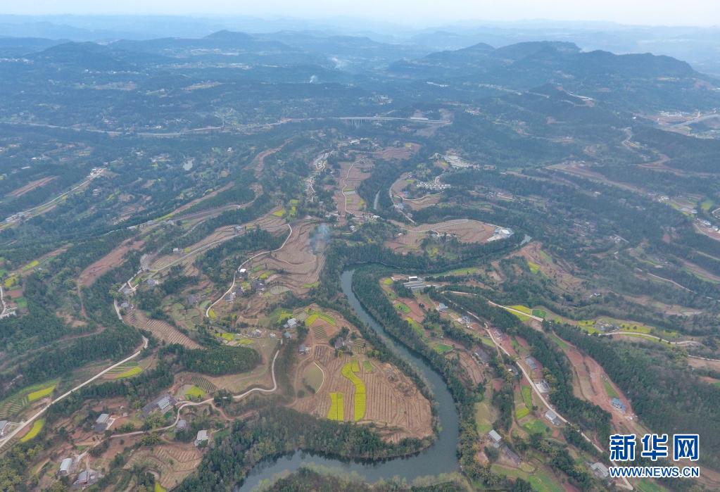 3月2日拍攝的巴中市秦巴山區(qū)風(fēng)光,這里隨處可見連片的產(chǎn)業(yè)基地(無人機照片)。新華社記者 劉坤 攝