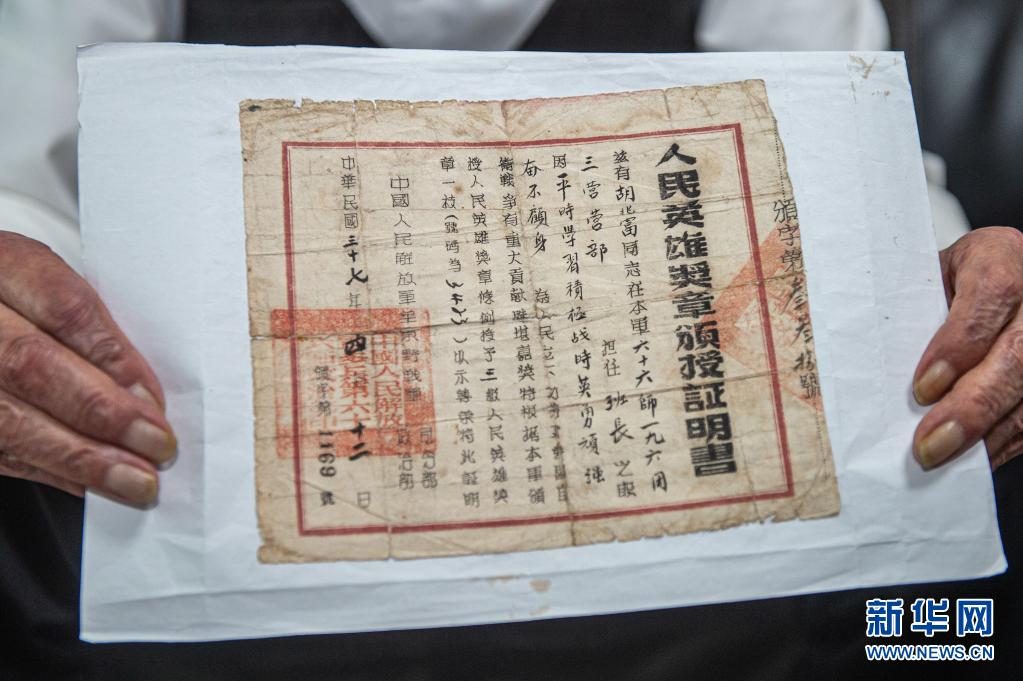 2019年,常山縣退役軍人事務(wù)管理局來(lái)到社區(qū)采集退役軍人信息時(shí),胡兆富老人在女兒胡玲的幫助下,找出了一個(gè)塵封許久的鞋盒,里面保存的東西讓所有人都大吃一驚:數(shù)枚略顯斑駁的軍功章與一張人民英雄獎(jiǎng)?wù)骂C授證明書。胡兆富老人隱藏了60余年的這段經(jīng)歷,終于為人所知。在抗日戰(zhàn)爭(zhēng)和解放戰(zhàn)爭(zhēng)中,他26次立功受獎(jiǎng),其中有兩次特等功、七次一等功、八次二等功、五次三等功,以及一枚人民英雄獎(jiǎng)?wù)隆A钆畠汉豳M(fèi)解的是,榮譽(yù)等身的父親,為何在過(guò)去的60余年里,對(duì)這些榮譽(yù)只字不提?
