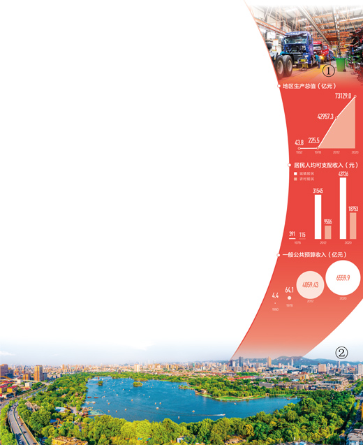 通過持續(xù)深入學(xué)習(xí)貫徹習(xí)近平總書記對(duì)山東工作的重要指示要求,全省上下思想認(rèn)識(shí)更加統(tǒng)一,思路目標(biāo)更加清晰,干事創(chuàng)業(yè)的精氣神昂揚(yáng)向上。尤其是黨的領(lǐng)導(dǎo)不斷加強(qiáng),黨的建設(shè)不斷深化,全面從嚴(yán)治黨向縱深推進(jìn),干部隊(duì)伍精神面貌煥然一新。政治生態(tài)的優(yōu)化,引領(lǐng)全省各領(lǐng)域各方面呈現(xiàn)出一系列趨勢(shì)性、關(guān)鍵性變化。經(jīng)濟(jì)生態(tài)在加快優(yōu)化。新舊動(dòng)能轉(zhuǎn)換初見成效并持續(xù)鞏固,2017年以來,關(guān)!吧y污”企業(yè)11萬多家,完成“十三五”煤炭消費(fèi)壓減任務(wù);“四新”經(jīng)濟(jì)占比由2017年的21.7%提高到去年的30.2%,高新技術(shù)產(chǎn)業(yè)產(chǎn)值占比達(dá)45.1%,比2017年提高10.1個(gè)百分點(diǎn),高質(zhì)量發(fā)展積厚成勢(shì)。政務(wù)生態(tài)在加快優(yōu)化。制度創(chuàng)新、流程再造不斷深化,“一窗受理·一次辦好”改革取得明顯成效,省市縣三級(jí)行政權(quán)力事項(xiàng)分別壓減54.4%、42.6%、24.2%,企業(yè)開辦時(shí)間由20天壓縮到1天,“掌上辦”事項(xiàng)超過2000項(xiàng),3年累計(jì)為企業(yè)新增減稅降費(fèi)4300多億元,市場(chǎng)主體每年凈增100萬戶以上。自然生態(tài)在加快優(yōu)化。水、氣等領(lǐng)域8場(chǎng)標(biāo)志性戰(zhàn)役取得明顯成效,PM2.5濃度較“十二五”末下降37%,優(yōu)良天數(shù)比例提高14.2個(gè)百分點(diǎn),國控地表水考核斷面優(yōu)良水體比例提高20.5個(gè)百分點(diǎn),齊魯大地山更綠、水更清、空氣更清新。社會(huì)生態(tài)在加快優(yōu)化。人民生活持續(xù)改善,“十三五”期間全省一般公共預(yù)算中用于民生方面的支出占比穩(wěn)定在80%左右;每年城鎮(zhèn)新增就業(yè)120萬人以上,城鄉(xiāng)居民人均可支配收入分別達(dá)到43726元和18753元,城鄉(xiāng)收入差距由2012年的2.58∶1縮小到2.33∶1;累計(jì)減少貧困人口251.6萬人,60多萬黃河灘區(qū)群眾今年將全部實(shí)現(xiàn)安居夢(mèng)。去年以來,全省上下堅(jiān)決貫徹落實(shí)黨中央決策部署,統(tǒng)籌推進(jìn)疫情防控和經(jīng)濟(jì)社會(huì)發(fā)展,各項(xiàng)工作取得明顯成效。2020年全省地區(qū)生產(chǎn)總值達(dá)7.3萬億元、增長3.6%,一般公共預(yù)算收入增長0.5%,規(guī)模以上工業(yè)增加值增長5%,固定資產(chǎn)投資增長3.6%。今年一季度,全省地區(qū)生產(chǎn)總值增長18%,比2019年同期增長11.1%,兩年平均增長5.4%,經(jīng)濟(jì)運(yùn)行加快邁入高質(zhì)量發(fā)展軌道。