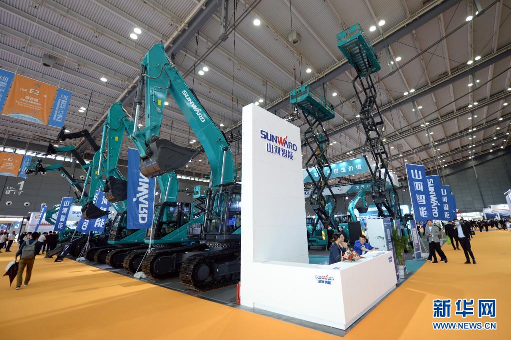 5月19日,觀眾在2021長沙國際工程機械展覽會山河智能展區(qū)參觀。新華社記者 陳振海 攝