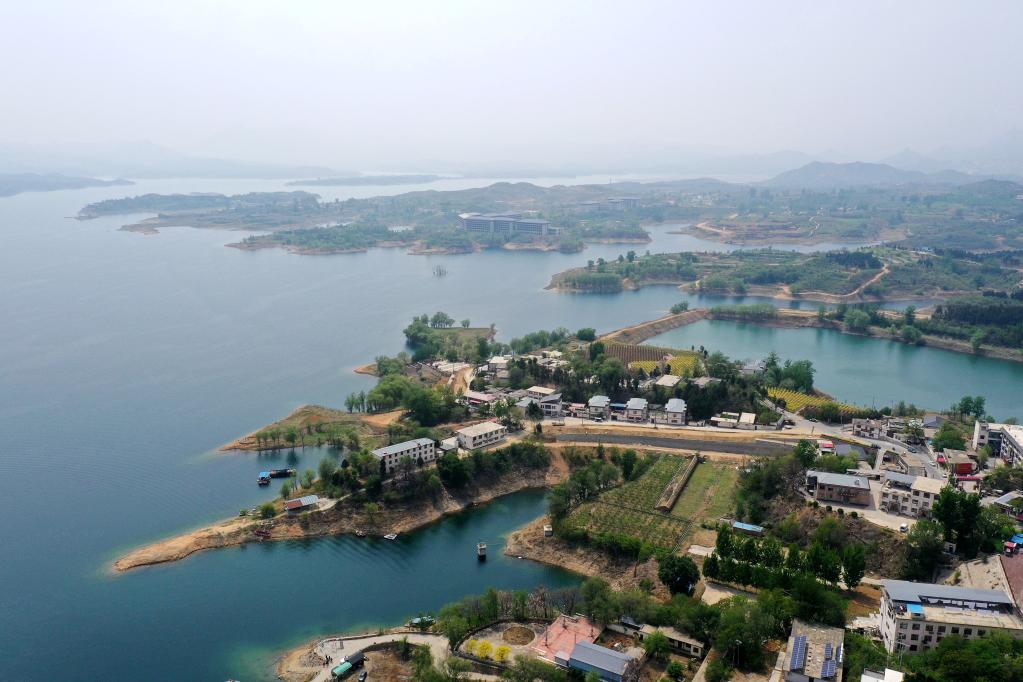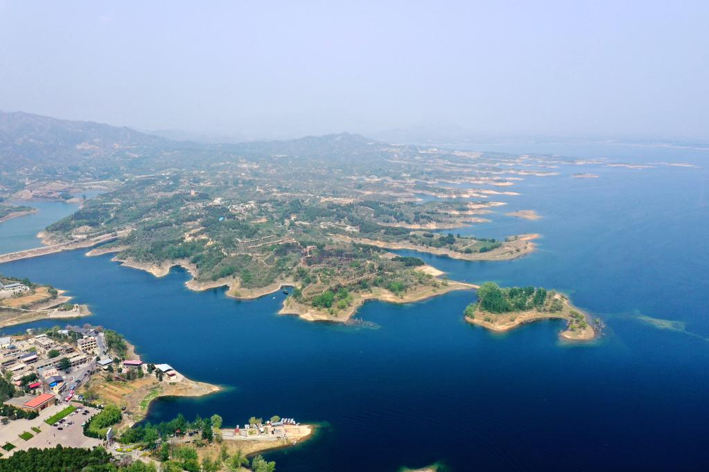 這是4月26日拍攝的崗南水庫(kù)(無(wú)人機(jī)照片)。新華社記者朱旭東攝