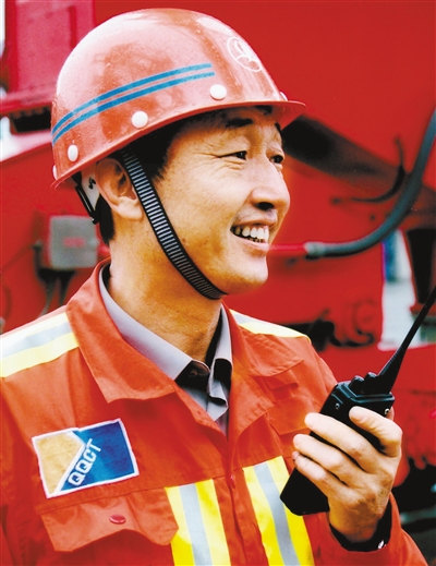 許振超在青島港工作(資料照片)。