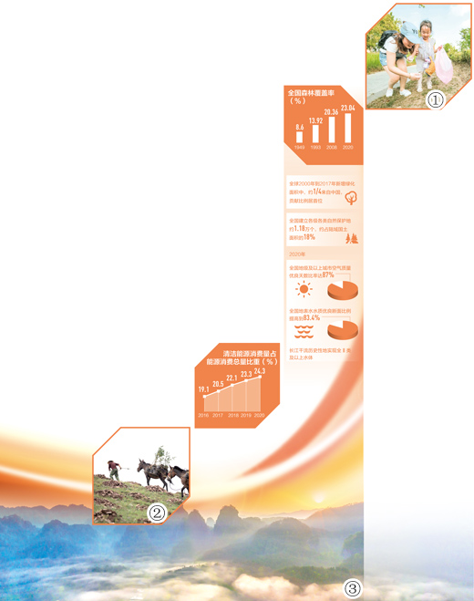 人不負(fù)青山,青山定不負(fù)人。保持加強(qiáng)生態(tài)文明建設(shè)的戰(zhàn)略定力,牢固樹(shù)立綠水青山就是金山銀山的重要理念,堅(jiān)定不移走生態(tài)優(yōu)先、綠色發(fā)展之路,我們將一步步實(shí)現(xiàn)建成美麗中國(guó)的目標(biāo),為共建繁榮、清潔、美麗的世界作出更大貢獻(xiàn)。