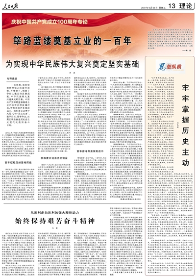 人民日?qǐng)?bào)整版闡釋?zhuān)汉`路藍(lán)縷奠基立業(yè)的一百年
