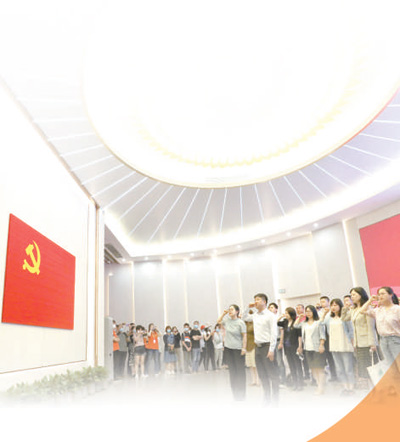黨員在中共一大紀(jì)念館里重溫入黨誓詞。