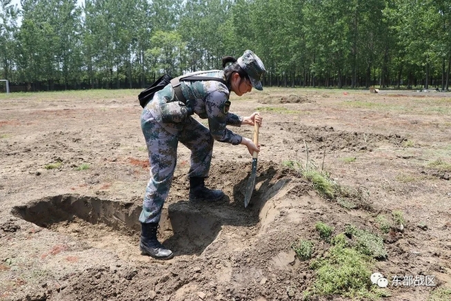 比起戰(zhàn)術(shù)協(xié)同課目身體與地面的死磕,掩體構(gòu)筑課目把體能、毅力比拼的維度深入到了地面之下!但是,土工作業(yè)對(duì)體能的考驗(yàn)依舊敗給了女兵手中的工兵鍬!