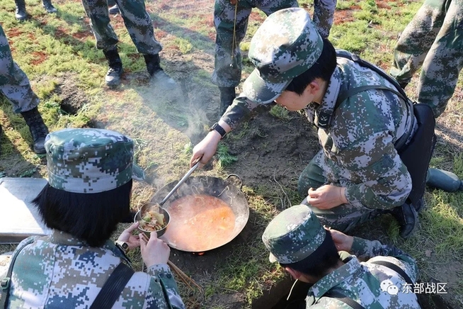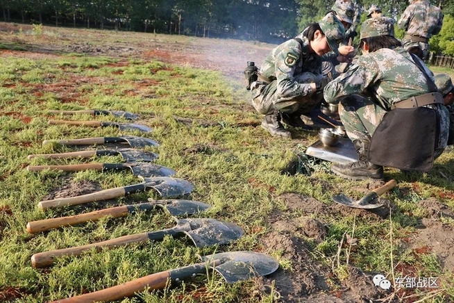 搭帳篷、挖灶、燒火、做飯,最后吃上自己親手烹飪的菜肴,對(duì)于女兵來(lái)說(shuō),這是所有訓(xùn)練課目中最有趣的“活”。頂著烈日,揮汗如雨,即使手掌磨出泡,也都樂(lè)此不疲。