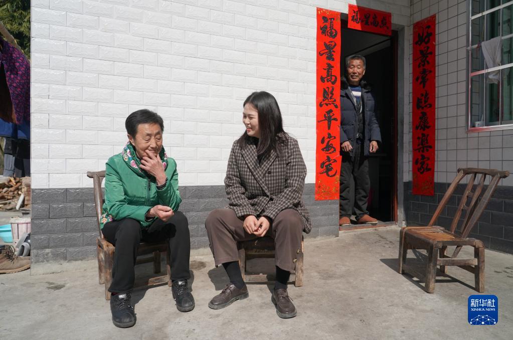 2月24日,漢濱區(qū)縣河鎮(zhèn)毛壩村黨支部書記兼村委會(huì)主任成英娟(中)到脫貧戶袁致秀(左)家走訪。