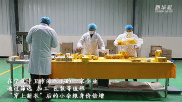 在寧夏中衛(wèi)市海原縣的一家企業(yè),通過篩選、加工、包裝等流程,“穿上新衣”后的小雜糧身價(jià)倍增。
