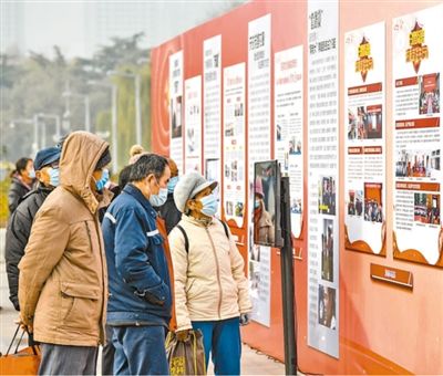 山東省濟南市市民在泉城廣場觀看當(dāng)?shù)貟吆诔龕簩m椂窢幊晒埂?/p>