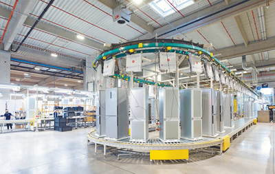 羅馬尼亞阿利安索工業(yè)園內(nèi),海爾冰箱互聯(lián)工廠正式投產(chǎn)。圖為工廠車間內(nèi)景。