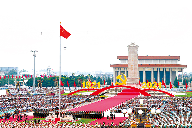 2021年7月1日上午,慶祝中國(guó)共產(chǎn)黨成立100周年大會(huì)在北京天安門(mén)廣場(chǎng)隆重舉行。新華社記者 蘭紅光 攝