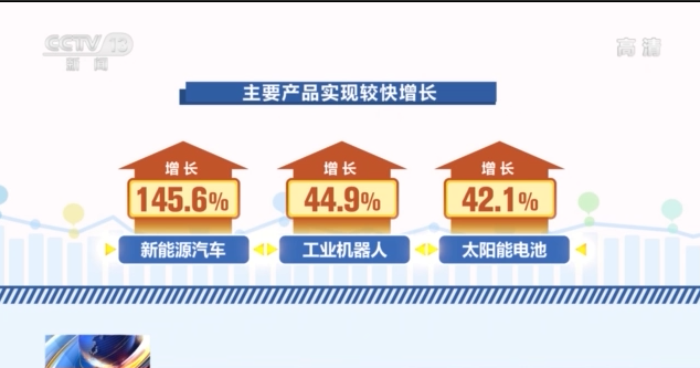 主要產(chǎn)品也實現(xiàn)較快增長,新能源汽車增長145.6%,工業(yè)機器人增長44.9%、太陽能電池增長42.1%。