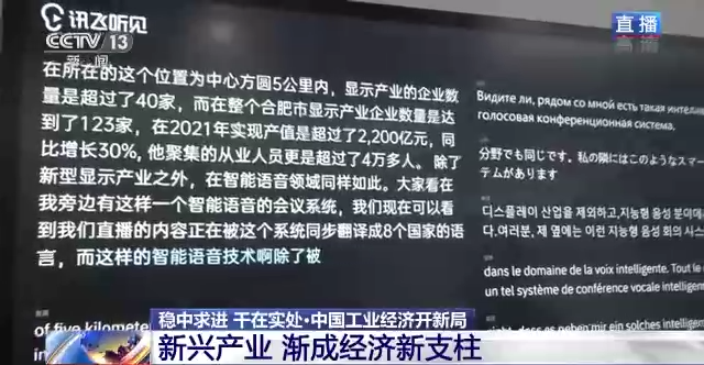 除了新型顯示產(chǎn)業(yè),在智能語音領(lǐng)域,同樣如此。在智能語音平臺,智能語音翻譯平臺正在將直播內(nèi)容翻譯成十幾個國家的語言。