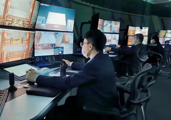 操作員在洋山港四期全自動化碼頭操作自動化設(shè)備。上港集團供圖