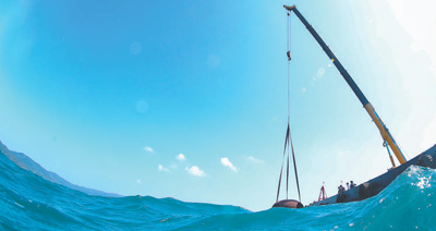 海南省三亞市亞龍灣相關(guān)海域,為修復(fù)珊瑚礁生態(tài)系統(tǒng),人工生態(tài)礁被吊入海中。