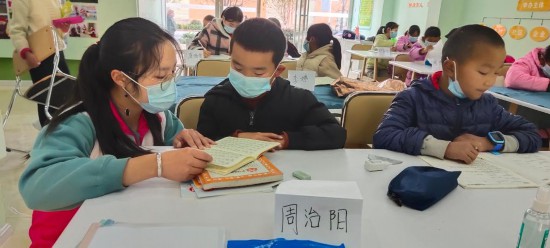 云南會(huì)澤新城婦聯(lián)項(xiàng)目點(diǎn)的志愿者正為孩子們輔導(dǎo)功課。(受訪者供圖)