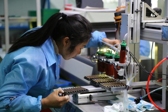 云南會(huì)澤縣新城的搬遷群眾在扶貧車間工作。(李榮山攝)