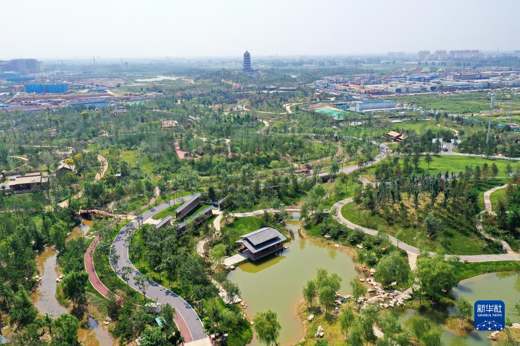 這是雄安新區(qū)悅容公園北苑內的景色(2021年9月1日攝,無人機照片)。新華社記者 牟宇 攝
