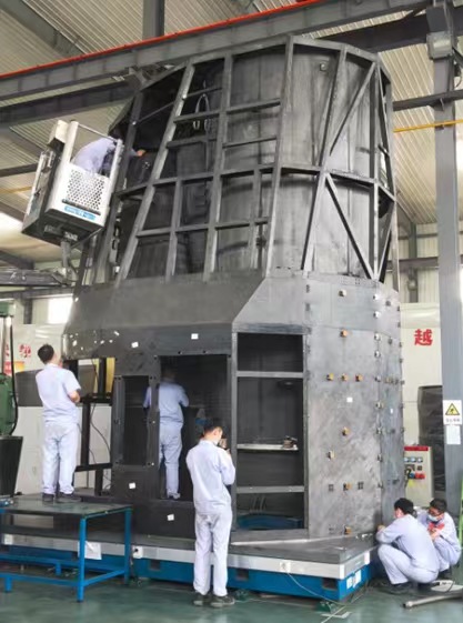 2021年王維和團(tuán)隊(duì)成員在望遠(yuǎn)鏡結(jié)構(gòu)組裝現(xiàn)場。(受訪者供圖)