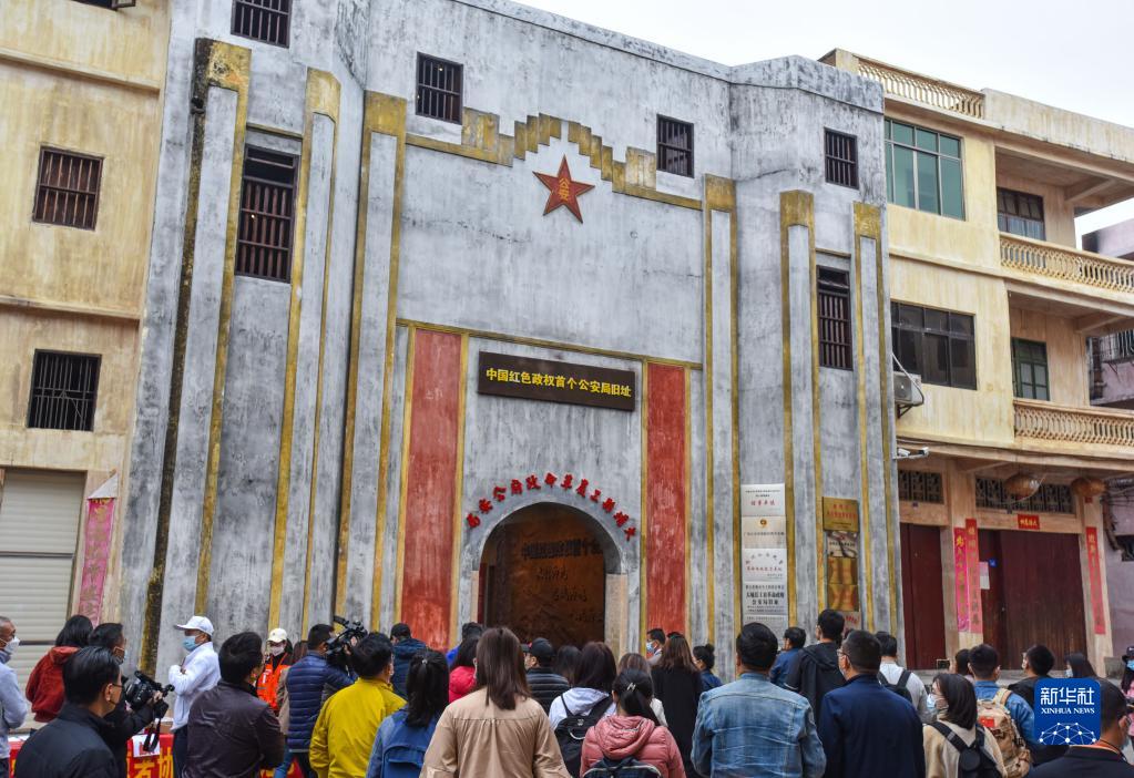 游客在位于廣東梅州大埔縣茶陽鎮(zhèn)的大埔縣工農(nóng)革命政府公安局舊址參觀(1月9日攝)。