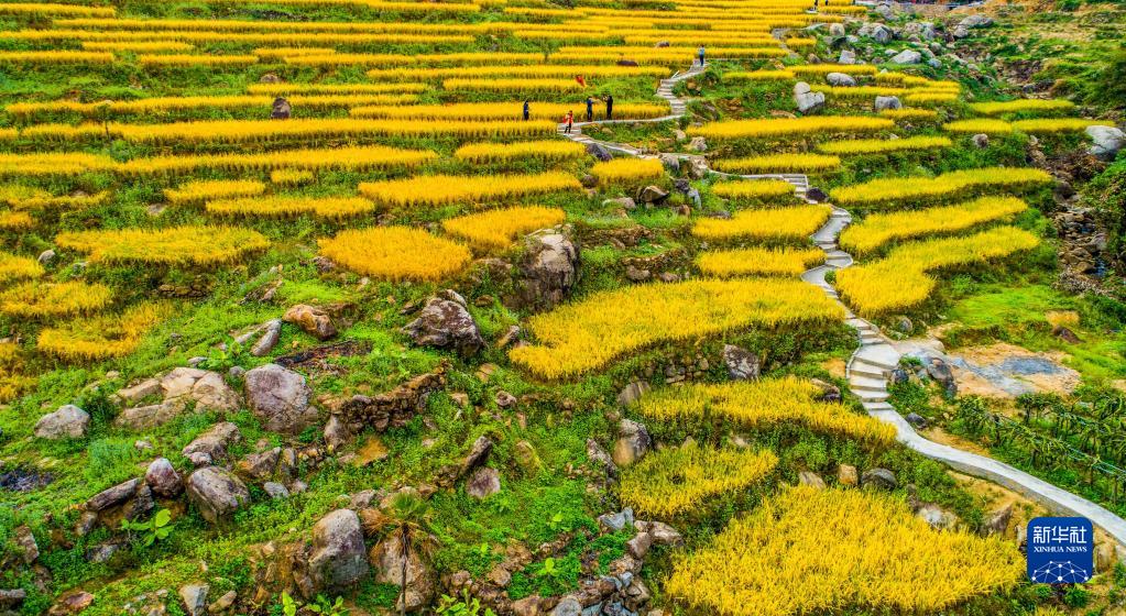 這是汕尾市陸河縣上護(hù)鎮(zhèn)洋嶺梯田豐收時(shí)節(jié)景觀(2018年11月1日攝)。新華社發(fā)(王貴 攝)