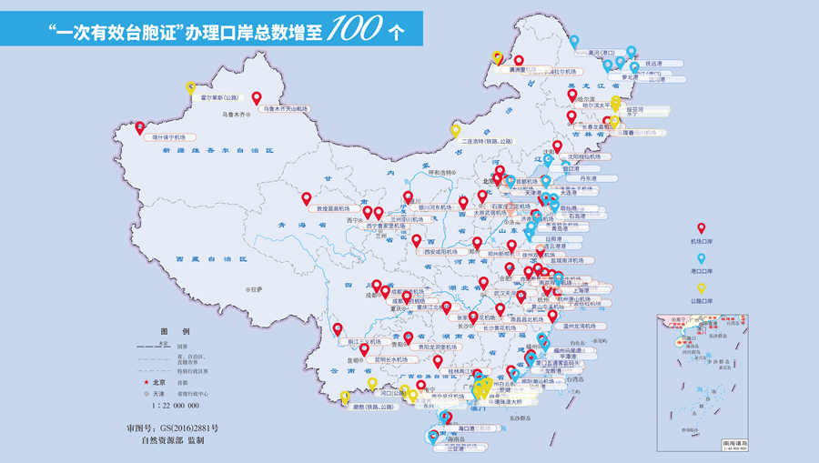 11月20日起,可簽發(fā)一次有效臺灣居民來往大陸通行證口岸數(shù)量至100個。(國務(wù)院臺辦微信公眾號)