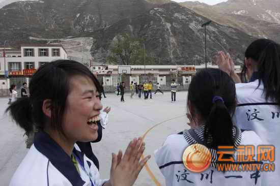 4月25日,全國網(wǎng)絡(luò)媒體重返災(zāi)區(qū)看奇跡采訪團(tuán)來到汶川一中。汶川一中有廣東省江門市援建,耗資2.4億元僅用6個(gè)月建成。汶川的初中步學(xué)生和來自阿壩州個(gè)縣的兩千多高中學(xué)生,在這里學(xué)習(xí)和生活。