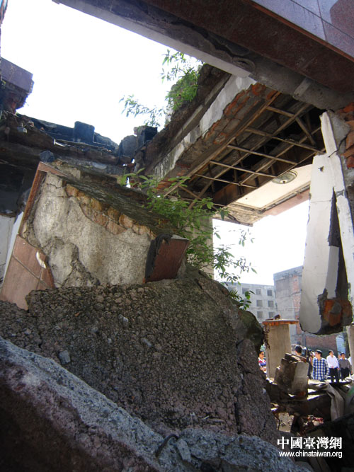 漢旺鎮(zhèn)政府舊址勾起人們沉痛的回憶。(中國臺灣網(wǎng) 朱毅 攝)
